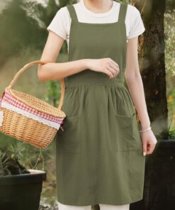Cotton Linen Pinafore Apron Dress for Women with Pockets Cute Art Chef Aprons for Kitchen Baking Gardening Painting