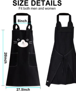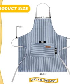 Cooking Apron with Pockets Waterproof Baking Apron Soft Chef Kitchen Aprons Cotton Polyester Blend Adjustable Bib Aprons for Women Men. Crafting BBQ. Black. Blue. Pink. Grey Stripes(4 Pcs)