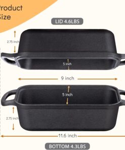 Grmimosa 2 in 1 Cast Iron Bread Loaf Pan with Lid. Loaf Pans for Baking Bread 9X5. Even Heat Distribution for Meatloaf. Homemade Bread