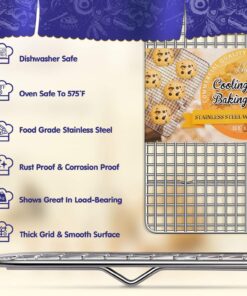 Hiware 2-Pack Cooling Racks for Baking – 10 X 15 – Stainless Steel Wire Cookie Rack Fits Jelly Roll Sheet Pan. Oven Safe for Cooking. Roasting. Grilling