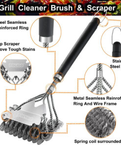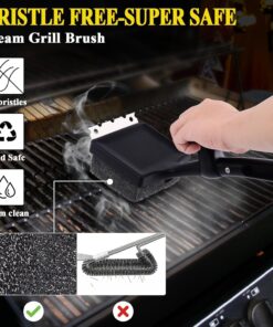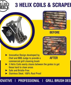 BBQ Grill Cleaning Brush Bristle Free & Scraper – Triple Helix Design Barbecue Cleaner – Non-Bristle Grill Brush and Scraper Safe for Gas Charcoal Porcelain Grills – Ideal Grill Tools Gift