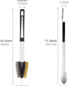 Double Sided Grill Cleaning Brush and Scraper. 16.5 BBQ Brush. Barbecue Cleaner with Stainless & Brass Bristles. Grilling Grate Cleaner. Safe Grill Accessories for Cast Iron/Stainless Steel Grate
