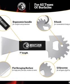 Mountain Grillers BBQ Grill Grate Scraper Wide Portable Grill Scrubber Fits Almost Any Grill. Griddle. Smoke Oven Grate Compact Non Slip Stainless Steel Grill Cleaner Tool with Built-In Bottle Opener