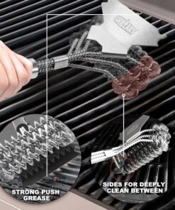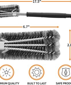 NEXCOVER BBQ Grill Brush – 18 Barbecue Cleaning Brush. Stainless Steel Grill Grate Cleaner. Safe Wire Scrubber. 3 in 1 Bristles BBQ Brush. Triple-Headed BBQ Tools. Grill Accessories for Grill Grates