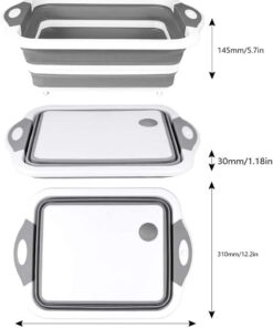 Qimh Collapsible Cutting Board – Foldable Space Saving Multi-Function Kitchen Dish Tub and Camping Sink- Washing and Draining Veggies Fruits Food Grade Storage Basket for Picnic. BBQ Prep and Camping