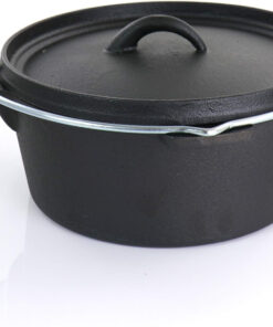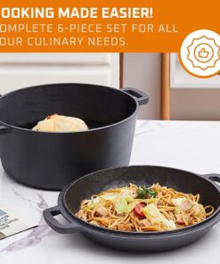 Pre Seasoned 6 Pcs Pots and Pans Set – Bruntmor Double Dutch Oven Crockpot – Cooking Set – Cast Iron Skillets and Square Grill Pan with Lid – Outdoor Camping Cookware – Kitchen Accessories