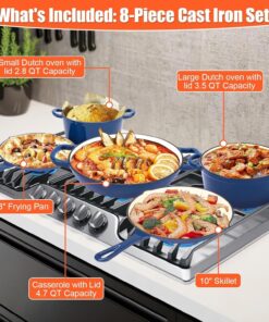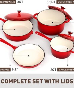 Nonstick Enameled Cast Iron Cookware Set. 8-Pcs Pots and Pans with Lid. Skillet. Frying Pan. Saucepan & Dutch Oven for All Stovetops. PFA Free – Ideal for Sourdough Bread Baking – Comes with Organizer