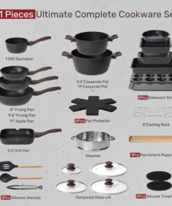 Kikcoin Pots and Pans Set Non Stick 31 Piece Kitchen Nonstick Cooking Cookware Sets with Grill Pan Saucepan Baking Sheet Utensil