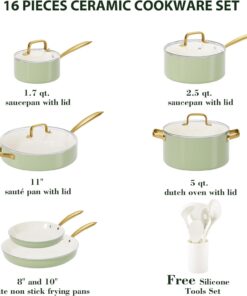 Pots and Pans Set Non Stick – VONIKI Ceramic Cookware Set with Cooking Utensils Set. Non Toxic Kitchen Cookware Sets Dutch Oven Pot with Lid Saucepan Set Sauté Pan Frying Pan Set for Cooking Gifts