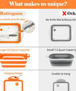 Rottogoon Collapsible Cutting Board. Foldable Chopping Board with Colander. Multifunctional Kitchen Vegetable Washing Basket Silicone Dish Tub for BBQ Prep/Picnic/Camping(Orange)