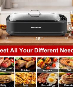 Indoor Grill. 1500W Smokeless Electric Grill with 2 In1 Nonstick Grill/Griddle Plates. Portable Korean BBQ Grill with 6-Level Control. Glass Lid. Dishwasher Safe. Double Plates. Black