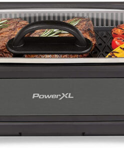 Power XL Smokeless Electric Indoor Removable Grill and Griddle Plates. Nonstick Cooking Surfaces. Glass Lid. 1500 Watt. 21X 15.4X 8.1. Black