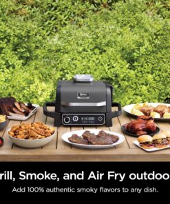 Ninja | Woodfire Series | 7-In-1 (Grill. BBQ. Roast. Air Fry. Dehydrate. Broil. Smoke) | Portable & Weather Resistant | Cook up to 6 Steaks & 30 Hot Dogs | Woodfire Pellets Included | OG701