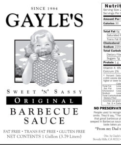 Gayle’S Sweet ‘N’ Sassy Original BBQ Barbecue Barbeque Sauce. 1 Gallon