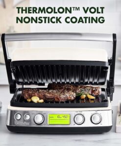 Elite 7-In-1 Multi-Function Contact Grill & Griddle. Healthy Ceramic Nonstick Aluminum. Two Sets of Grill & Waffle Plates. Adjustable Shade & Shear. Closed Press/Open Flat Surface.Cream White