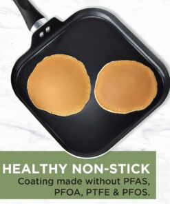 Ecolution Artistry Nonstick Square Griddle. Easy to Clean. Comfortable Handle. Even Heating. Dishwasher Safe Pots and Pans. 11-Inch. Black