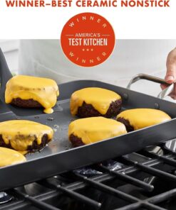 Greenpan Valencia Pro 18 X 11 Double Burner Griddle Pan. Induction Suitable. Ceramic Nonstick Pfas-Free. Rectangular Stovetop Cookware. Stainless Steel Handles. Dishwasher. Oven & Broiler Safe. Gray