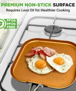 Nutrichef Copper Pan Non-Stick Coating Inside. Hard-Anodized Look Heat Resistant Lacquer Outside. Silicone Handle NCSQPA. 1 Griddle
