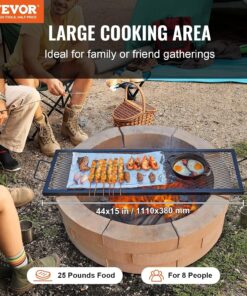 VEVOR X-Marks Fire Pit Grill Grate. Rectangle Cooking Grate. Heavy Duty Steel Campfire BBQ Grill Grid with Handle & Support X Wire. Portable Camping Cookware for outside Party Gathering. 44 Inch Black