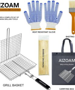 Grill Basket Grill Basket Stainless Steel BBQ Grilling Basket Large Folding Grill Basket with Removable Handle. Grill Basket for Fish.Vegetables . Grill Accessories BBQ Accessories Grilling Gifts for Men Dad .