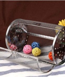 GEZICHTA BBQ Grill Roaster.Stainless Steel Grilled Cage.Bbq Rolling Grill Basket for Vegetables.Rotisserie Grill Peanut Beans French Fries Basket.Silver Grilling Accessories(22 * 11.7 Cm)