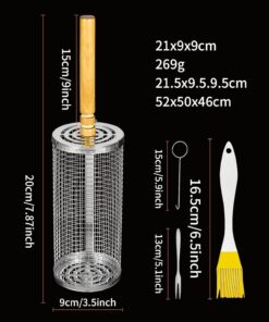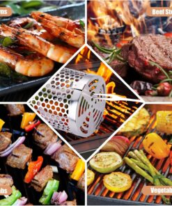 Grill Basket for Outdoor Camping.Bbq Grill Basket. Rolling Grilling Basket. Stainless Steel Grill Mesh Barbeque Grill Accessories. Portable Grill Baskets for Fish. Meat. Gifts for Men Dad Husband