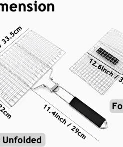 Grill Basket. Barbecue BBQ Grilling Basket . Stainless Steel Large Folding Grilling Baskets with Handle. Portable Outdoor Camping BBQ Rack for Fish. Shrimp. Vegetables. Barbeque Griller Cooking Accessories