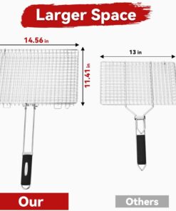 Grill Basket. Large Folding Grilling Basket with Grill Cleaning Brush. Stainless Steel Grill Basket. for Chicken. Meat. Steak. Chops(1Pcs Large Grill Basket + 1Pcs Brush)