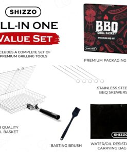 Grill Basket. Fish Grill Basket. Rustproof Stainless Steel BBQ Grilling Basket for Meat.Steak. Shrimp. Vegetables. Chops. Heavy Duty Grill Basket Outdoor Grill Accessories