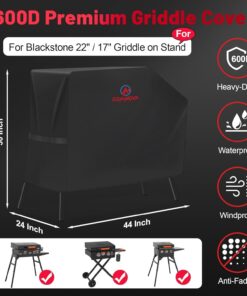 Griddle Cover for Blackstone 22 Inch 17 Inch Griddle with Hood and Stand – 600D Flat Top Grill Cover for Blackstone 22 17 Griddle on Stand and 22 Adventure Ready. Heavy Duty & Waterproof