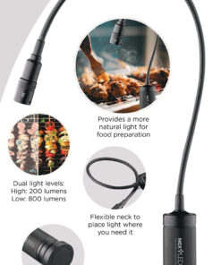 Super Bright BBQ LED Grill Dual Action Light. Adjustable Light Head & Strap for Entire Grilling Space. Water & Heat Resistant