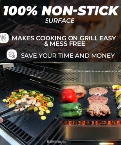 Flamefusion Grill Mat – Heavy Duty 600 Degree BBQ Grill Mat for Outdoor Grilling (Set of 5) | Extended Warranty