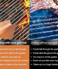 BBQ Grill Mat Set of 7-100% Non-Stick &Baking Mats. PFOA Free. Heavy Duty. Resuable and Easy to Clean. Works on Gas Charcoal and Electric BBQ (7 Pcs) (Copper)