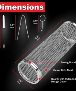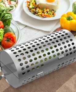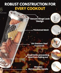 Mckay Rolling BBQ Grilling Basket Set | Portable. Durable Stainless Steel. Perfect for Barbecue & Outdoor Cooking- Rotating Grill Accessories Mesh Net Tube Cylinder for Delicious Meals. Veggies. 2 Pcs