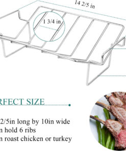 KUNANG BBQ Rib Racks for Smoking.Turkey Roasting Rack Roast Rack Dual Purpose Fit for Smoker.Oven and Grill