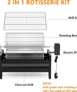 Onlyfire 2 in 1 Charcoal Grill Rotisserie Kit with 3 Stainless Steel Rotating Baskets and 24 in Grill Grate. Auto Swivel BBQ Roasting Machine for Outdoor Patio Backyard. Multi-Functional Camping Grill