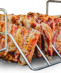 Rib Rack Stainless Steel – 6-Rib Capacity! Integrated Temperature Probe Holder – Never Risk Burnt Ribs Again! 100% Food-Safe. Non-Magnetic Stainless Steel – Easy Clean-Up and Coating-Free!