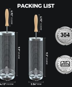 Rolling Grill Basket. New Opening Design. Extra Sturdy Cylinder Grilling Basket. Food Grade Stainless Steel. Large Portable Outdoor Camping Accessories BBQ Net Rack. Cooking Griller for Fish. Vegetables. and More – Gifts for Men Dad Husband – Set of 2