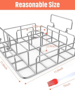 RUSFOL Beercan Chicken Roaster and Rib Rack with a Silicone Oil Brush. Square Stainless Steel BBQ Stand for Smoker.Oven and Grill. Cook up to 4 Ribs and a Whole Chicken at a Time