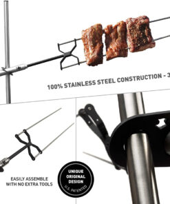 Rotisserie Grill – Heavy Duty Electric Rotisserie Kit for Home. Portable for Camping & Outdoors – Motor Works with 110-240V. AA Batteries or Solar – Stainless Steel. 22 LB Capacity. Bag Included