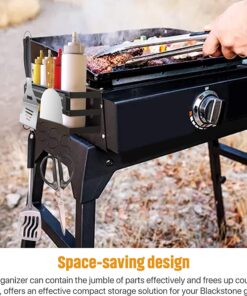 Stainless Steel Griddle Caddy with Magnetic BBQ Utensils Strip for 28/36 Blackstone Griddles. with a Allen Key. Space Saving BBQ Accessories Storage Box. Free from Drill Hole&Easy to Install