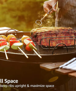 Sorbus® Non-Stick Rib Rack – Porcelain Coated Steel Roasting Stand – Holds 4 Rib Racks for Grilling & Barbecuing – Perfect BBQ Accessories for Smoker and Grill – Durable and Convenient Design (Black)