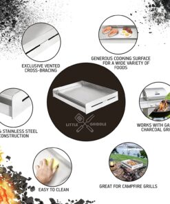 Sizzle-Q SQ180 100% Stainless Steel Universal Griddle with Even Heating Cross Bracing for Charcoal/Gas Grills. Camping. Tailgating. and Parties (18X13X3)