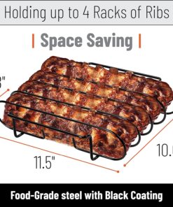 UNCO- Stainless Steel Rib Rack. Holds up to 4 Full Racks of Ribs for Smoking. Smoker Rack for Grilling. Nonstick BBQ Rib Rack Stand Holder