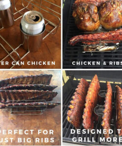 Cataumet BBQ Rib Rack and Beer Can Chicken Holder Smoking Rack Fits Big Egg Style Grills Ovens and Smokers Made with Genuine 304 Stainless Steel
