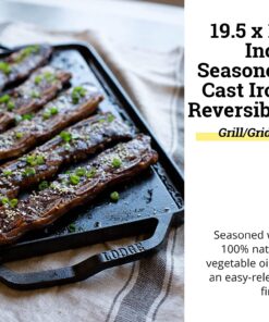 Chef Collection Cast Iron Reversible Grill/Griddle – Cast Iron Flat Griddle & Grill for Stovetop. Oven. Grill. or Open Fire – Double Burner Cast Iron Skillet with Handles