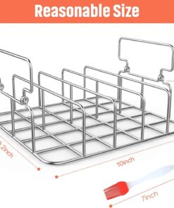Durable Stainless Steel Rib Rack with a Silicone Oil Brush. BBQ Stand with 2 Handle for Smoker.Oven and Grill. Cook up to 5 Ribs at a Time