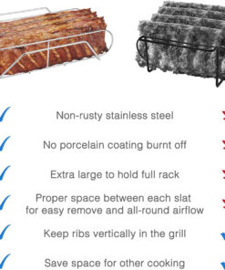 Duke Grills Omaha Rib Rack for Smoker and Grill – Non Stick Stainless Steel Grill Rack for 6 Racks of Ribs – for Traeger. Weber. Green Egg. Oven – Reversible for Roasts. Chicken. Prime Rib