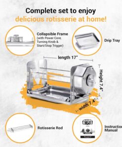 Cordless Universal Rotisserie Kit for Grills Ovens and Smokers – Non-Electric Wind-Up Spit Roaster. Gas or Charcoal BBQ – Indoor/Outdoor (Stainless Steel)