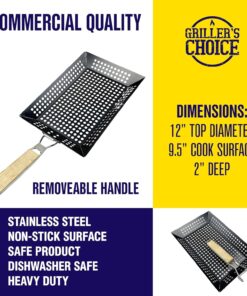 Griller’S Choice Rectangular Grill Basket with Removeable Handle – Large Non-Stick Commercial Basket with Handle for Outdoor Grilling. Designed by Chef. BBQ Judge. BBQ Grill Accessory Grill Pan.